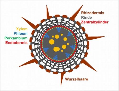 Graphische Darstellung im Querschnitt der Hauptelemente einer Wurzel
