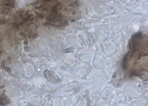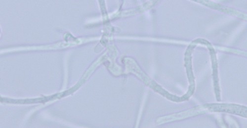 Bei Trockenheit schrumpft der Pilz zu einer dünnen Kruste zusammen, die bei Feuchtigkeit dann wieder aufquillt.