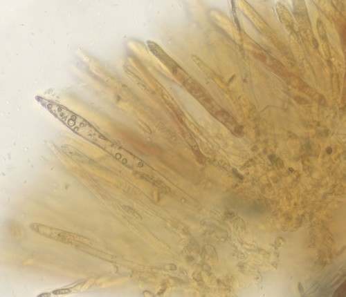 Gestieltes Becherchen, behaart, unter Lupe sichtbar, ca. 1-1,5 mm